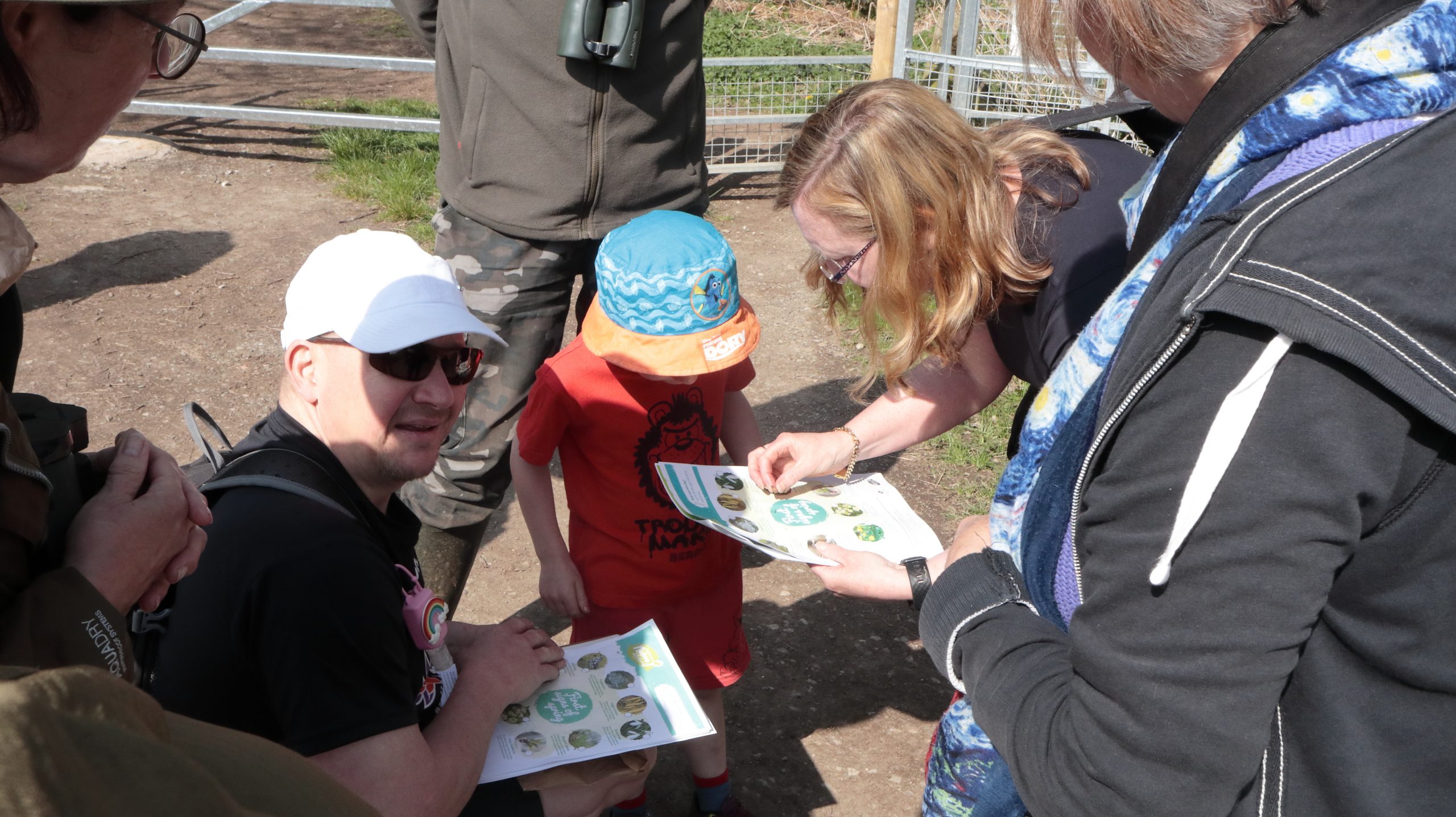 Our spring nature trail was ably lead by Sharon, fantastic weather this morning..The group pause by the gate at Haw Park Wood, Pete was always on hand to answer questions.The kids were fascinated to find what was underneath the logs.A brilliantly camouflaged chaffinch nest was spotted amongst the hawthorne branches.A millipede is a special kind of creepy-craly.Sharo ticks another find off this young man’s id sheet.